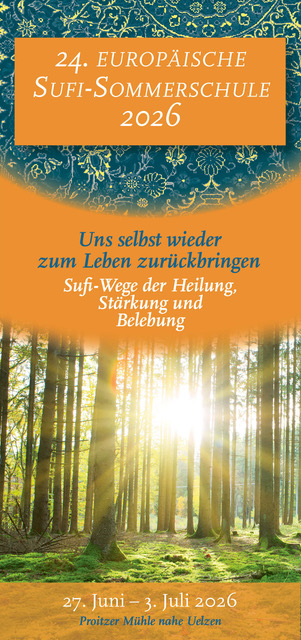 Unsere Sommerschule zelebriert den lebendigen Weg der vielen Pfade des Herzens durch Sufi-Dhikr (Erinnerung), Sitz- und Gehmeditation, Körpergebet, Zeiten der Stille, Heilung, spirituelle Musik, Seelenarbeit und spirituelle Psychologie, Kunst und Tänze des Universellen Friedens und mehr.
